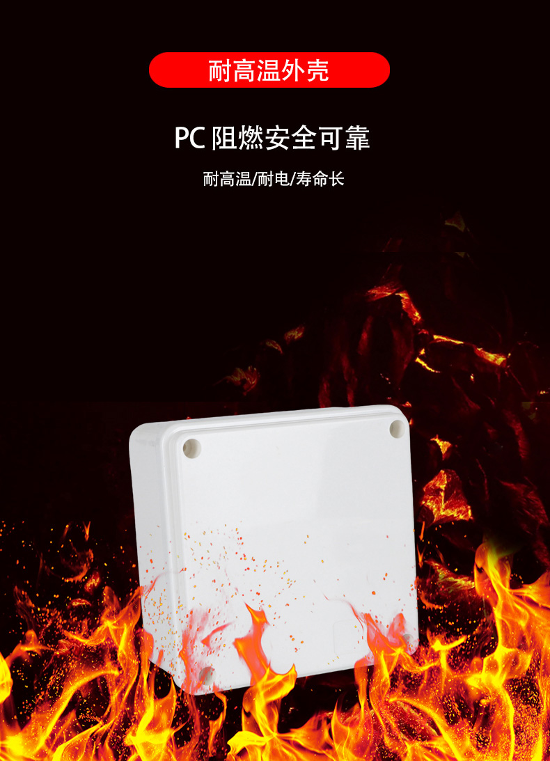 多重密封/安全防水 防水IP等級(jí) (IP44)可供選材料(常ABS)ABS阻燃、PC,合金材PC阻燃安全可靠/耐高溫/耐電/壽命長(zhǎng)每一個(gè)部分都是精心挑選的,只是為了打造一個(gè)好的產(chǎn)品