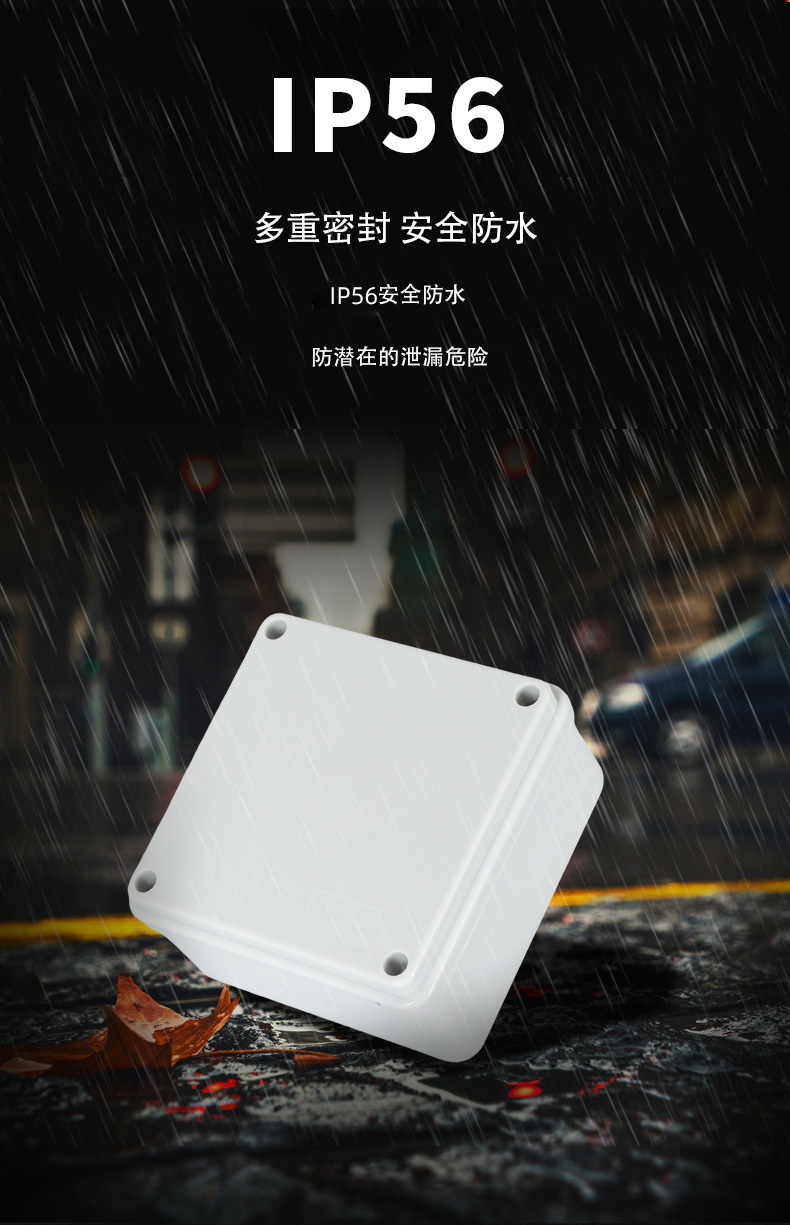 尺寸:100×100×50(mm)多重密封/安全防水 防水IP等級(jí) (IP44)可供選材料(常ABS)ABS阻燃、PC,合金材PC阻燃安全可靠/耐高溫/耐電/壽命長(zhǎng)每一個(gè)部分都是精心挑選的,只是為了打造一個(gè)好的產(chǎn)品