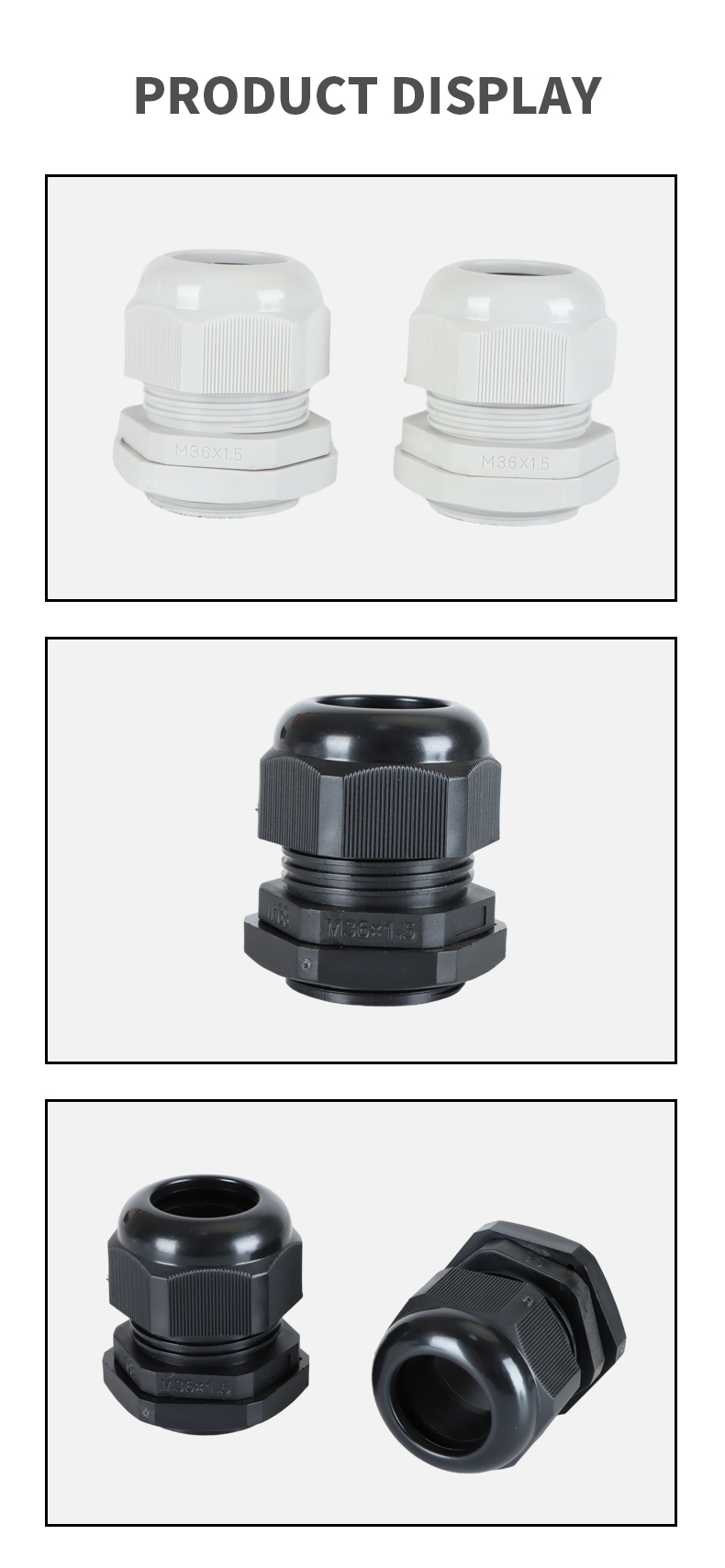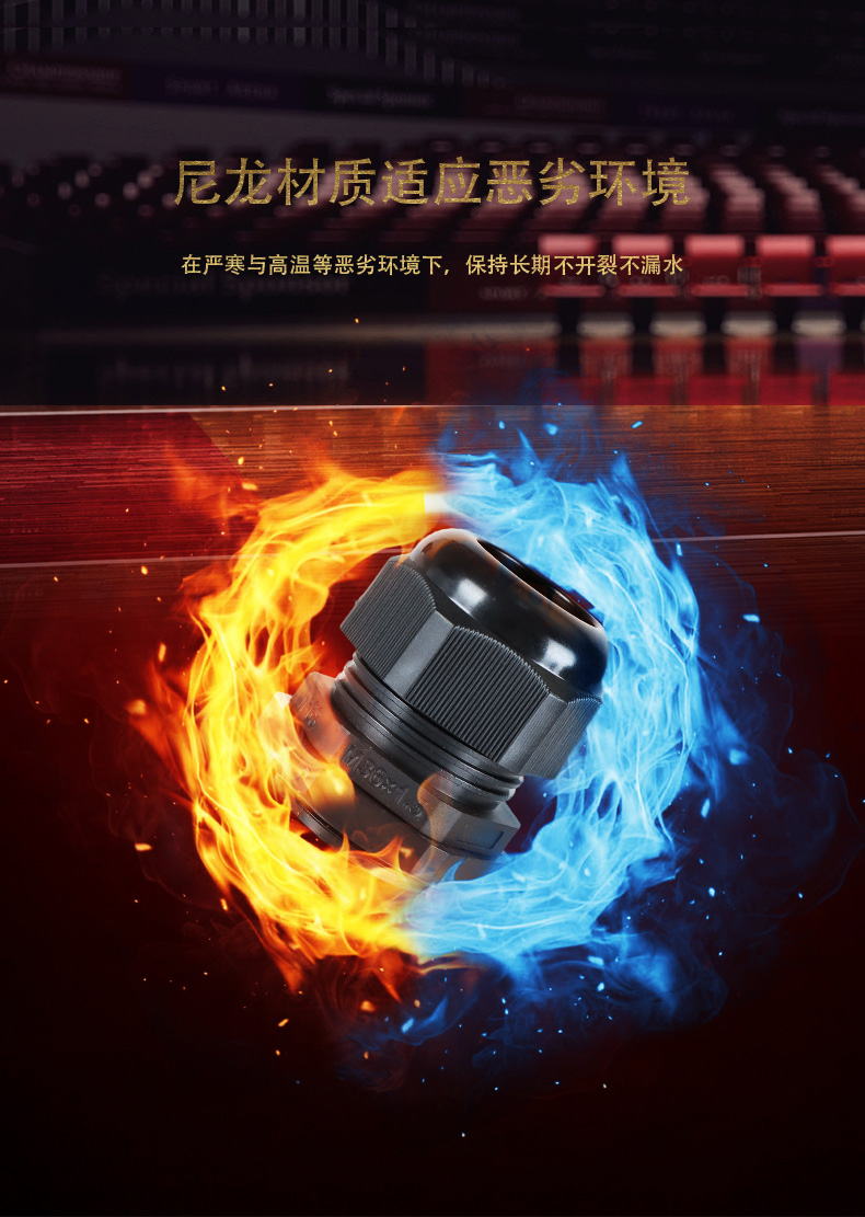 尼龍材質適用惡劣環(huán)境紅、灰、黑、深灰、白、藍 六種顏色常規(guī):黑、灰兩種顏色,其它顏色需要定做在嚴寒與高溫等惡劣環(huán)境下,保持長期不開裂不漏水高密封性防水接頭保護電纜安全,長期使用不容易滲水