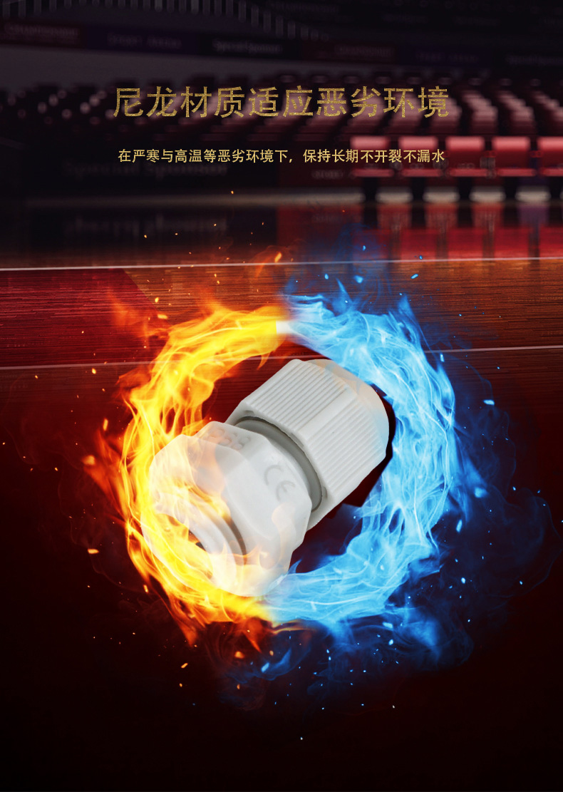 尼龍材質(zhì)適用惡劣環(huán)境紅、灰、黑、深灰、白、藍(lán) 六種顏色常規(guī):黑、灰兩種顏色,其它顏色需要定做在嚴(yán)寒與高溫等惡劣環(huán)境下,保持長(zhǎng)期不開(kāi)裂不漏水高密封性防水接頭保護(hù)電纜安全,長(zhǎng)期使用不容易滲水