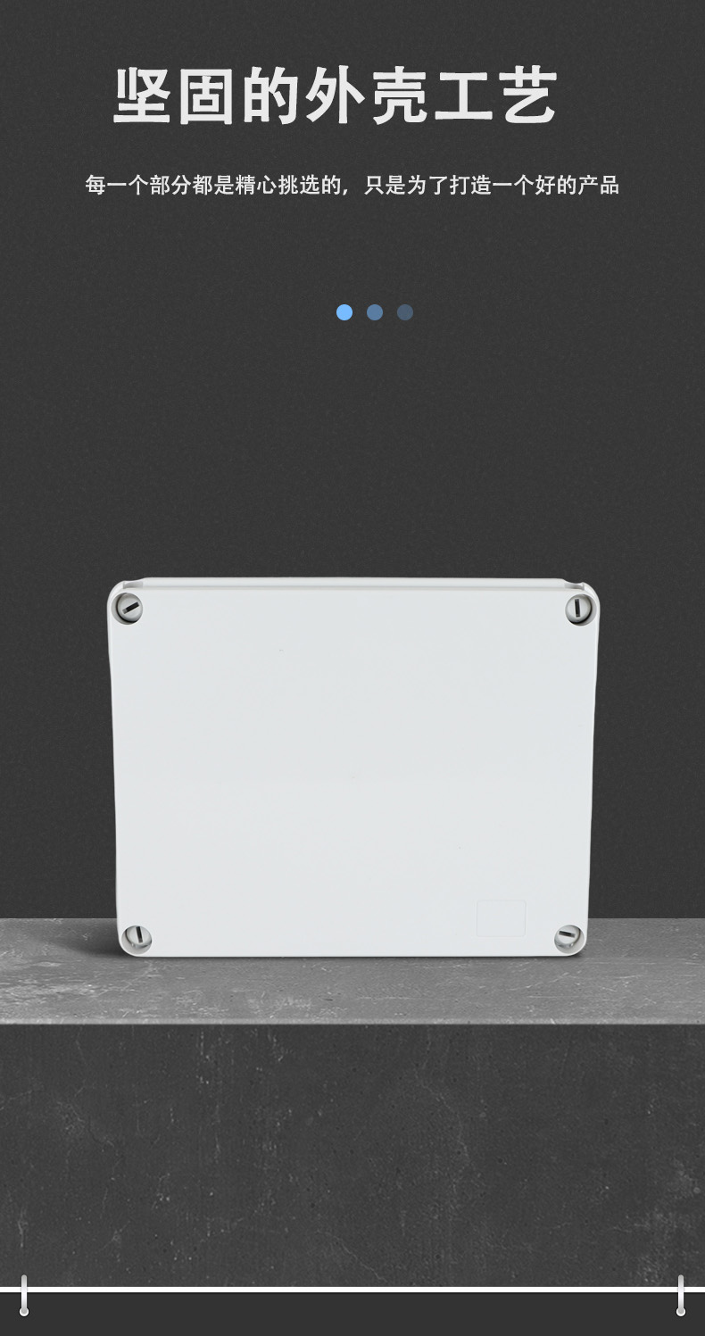多重密封/安全防水 防水IP等級 (IP44)可供選材料(常ABS)ABS阻燃、PC,合金材PC阻燃安全可靠/耐高溫/耐電/壽命長每一個部分都是精心挑選的,只是為了打造一個好的產(chǎn)品