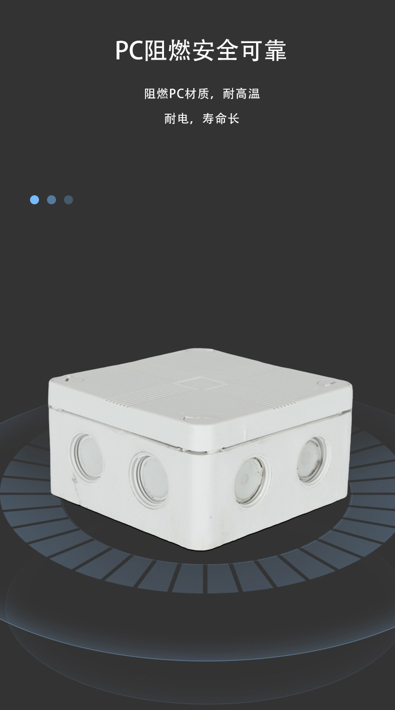 多重密封/安全防水 防水IP等級(jí) (IP44)可供選材料(常ABS)ABS阻燃、PC,合金材PC阻燃安全可靠/耐高溫/耐電/壽命長(zhǎng)每一個(gè)部分都是精心挑選的,只是為了打造一個(gè)好的產(chǎn)品