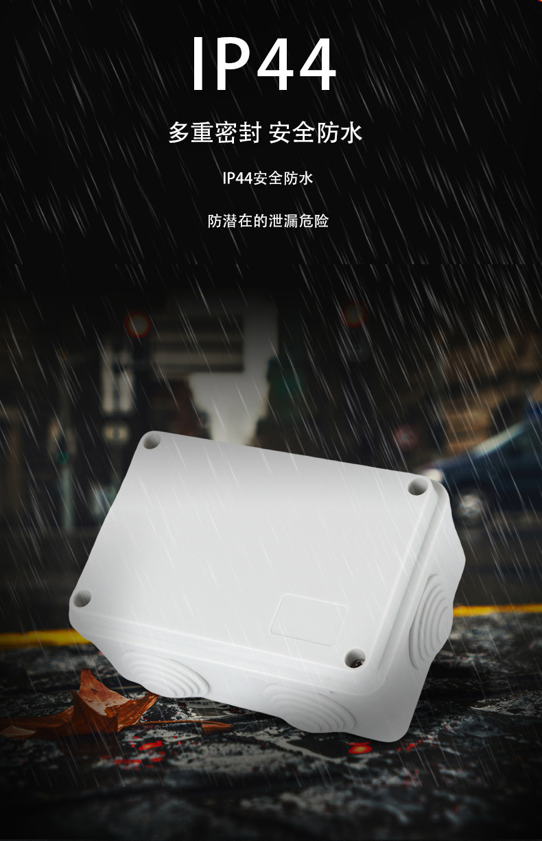 尺寸:120×80×50(mm)多重密封/安全防水 防水IP等級(jí) (IP44)可供選材料(常ABS)ABS阻燃、PC,合金材PC阻燃安全可靠/耐高溫/耐電/壽命長每一個(gè)部分都是精心挑選的,只是為了打造一個(gè)好的產(chǎn)品