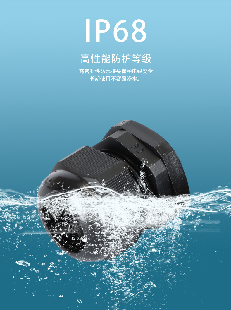 尼龍材質(zhì)適用惡劣環(huán)境紅、灰、黑、深灰、白、藍 六種顏色常規(guī):黑、灰兩種顏色,其它顏色需要定做在嚴寒與高溫等惡劣環(huán)境下,保持長期不開裂不漏水高密封性防水接頭保護電纜安全,長期使用不容易滲水