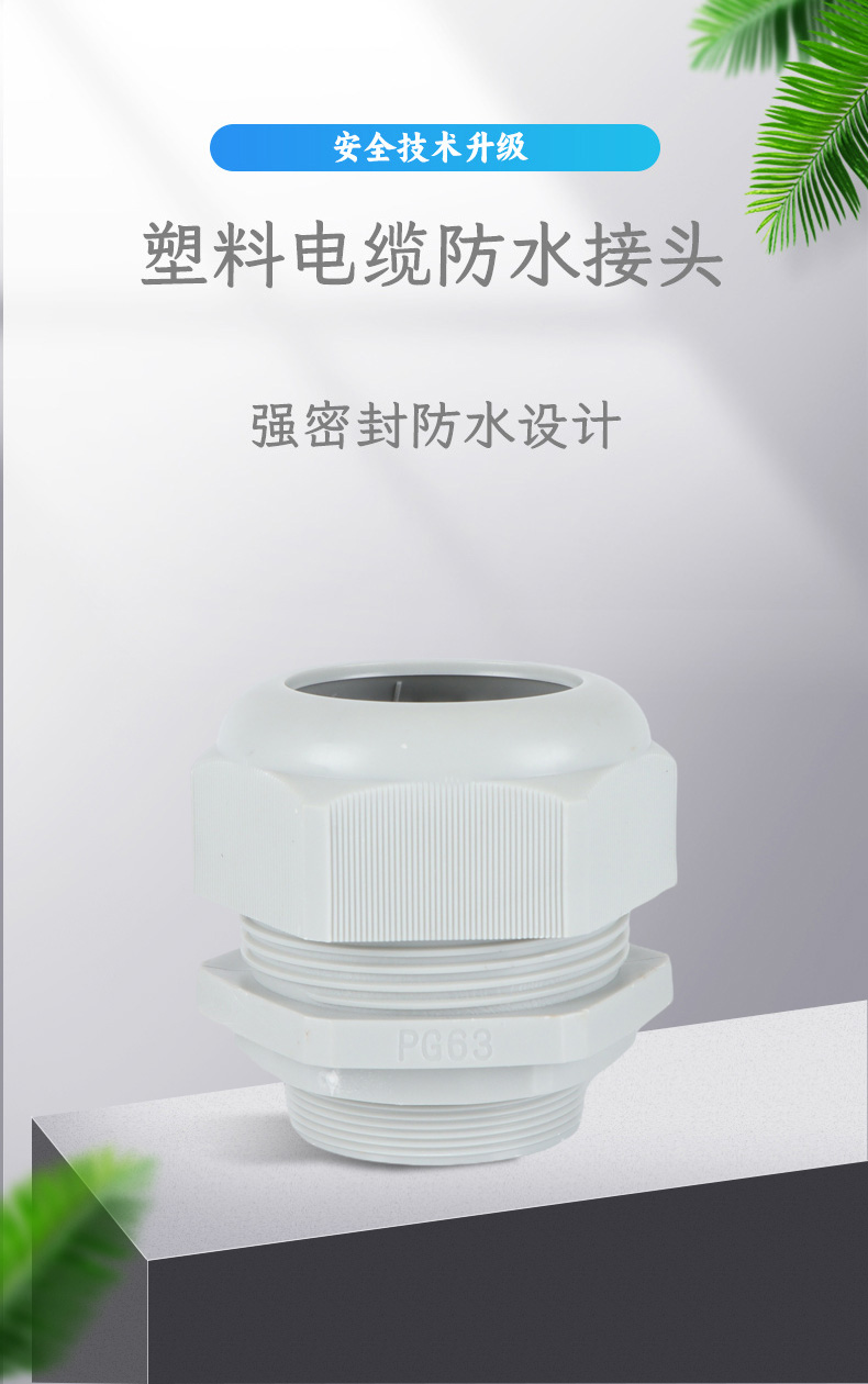 尼龍材質(zhì)適用惡劣環(huán)境紅、灰、黑、深灰、白、藍(lán) 六種顏色常規(guī):黑、灰兩種顏色,其它顏色需要定做在嚴(yán)寒與高溫等惡劣環(huán)境下,保持長(zhǎng)期不開裂不漏水高密封性防水接頭保護(hù)電纜安全,長(zhǎng)期使用不容易滲水