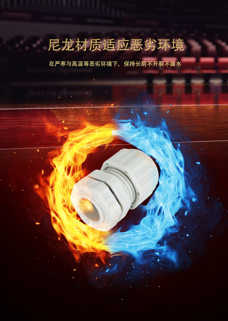 尼龍材質(zhì)適用惡劣環(huán)境紅、灰、黑、深灰、白、藍(lán) 六種顏色常規(guī):黑、灰兩種顏色,其它顏色需要定做在嚴(yán)寒與高溫等惡劣環(huán)境下,保持長(zhǎng)期不開裂不漏水高密封性防水接頭保護(hù)電纜安全,長(zhǎng)期使用不容易滲水